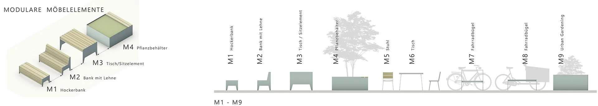 Der Straßenraum wird auf seiner Länge in Sequenzen getaktet. Er beinhaltet entsprechend den Abmessungen des Stadtraumprofils gepflasterte, immobile und mobile Grünabschnitte. Die Beckergrube zeigt sich auf ihrer Länge in einem eigenen Rhythmus. Eine homogene Pflasterung der Gehwege als einheitliche Textur stärkt das räumliche Erscheinungsbild der Straße vom Osten an der Breiten Straße bis zur Holstenhafenbrücke im Westen. Stein und Grün, Klimaanpassung und Regenwassereinleitung, Aktion und Verweilen in abgewogenem Verhältnis sind die neue, resiliente Identität der Beckergrube.